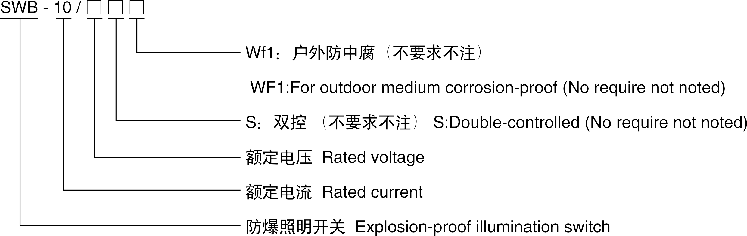 > 請根據“型號含義”注明所需產品詳細的規格,防爆標志。