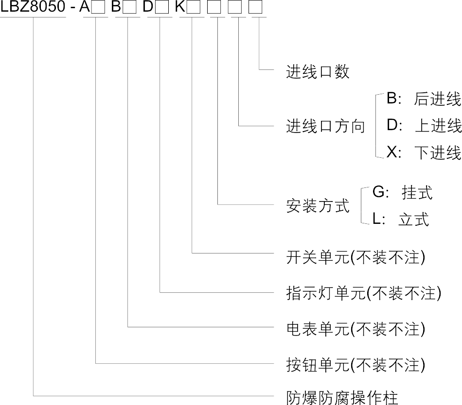 | 內裝原件 | 防爆按鈕、 防爆電表、 防爆帶燈按鈕、 防爆指示燈、 防爆開關 | ||