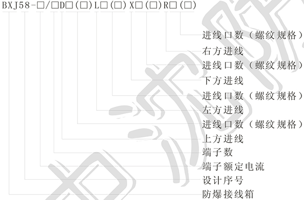 * 進線口方向變化多端,可根據用戶要求任意選配進線口,也可以直接配裝電纜密封接頭(注:用戶在訂貨時必須注明);